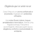 O Casa Chique é um aroma sofisticado e envolvente, inspirado em ambientes refinados e cheios de personalidade. Combina notas florais nobres, nuances amadeiradas elegantes e um fundo levemente adocicado, criando uma fragrância limpa, marcante e extremamente aconchegante. É o perfume ideal para quem valoriza requinte, conforto e exclusividade, transformando qualquer ambiente em um espaço elegante e acolhedor.